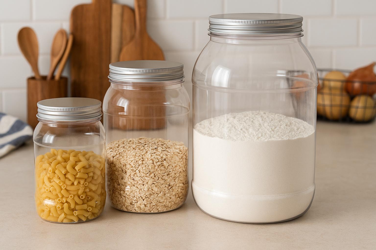 A série Lulu oferece uma solução inovadora e prática para o armazenamento seguro de alimentos e outros produtos. Estes recipientes em PET, próprios para contacto alimentar, destacam-se pela sua robustez e utilização universal. Graças ao seu peso reduzido e elevada estabilidade, são ideais para o uso diário. Com uma capacidade de 1000 a 4000 ml, oferecem amplo espaço para diversos conteúdos. A boca de rosca 100/400 garante uma vedação fiável, sendo que tampas compatíveis estão disponíveis no nosso sortido. Lulu combina funcionalidade, qualidade e versatilidade, sendo a escolha perfeita para uma armazenagem higiénica e segura.