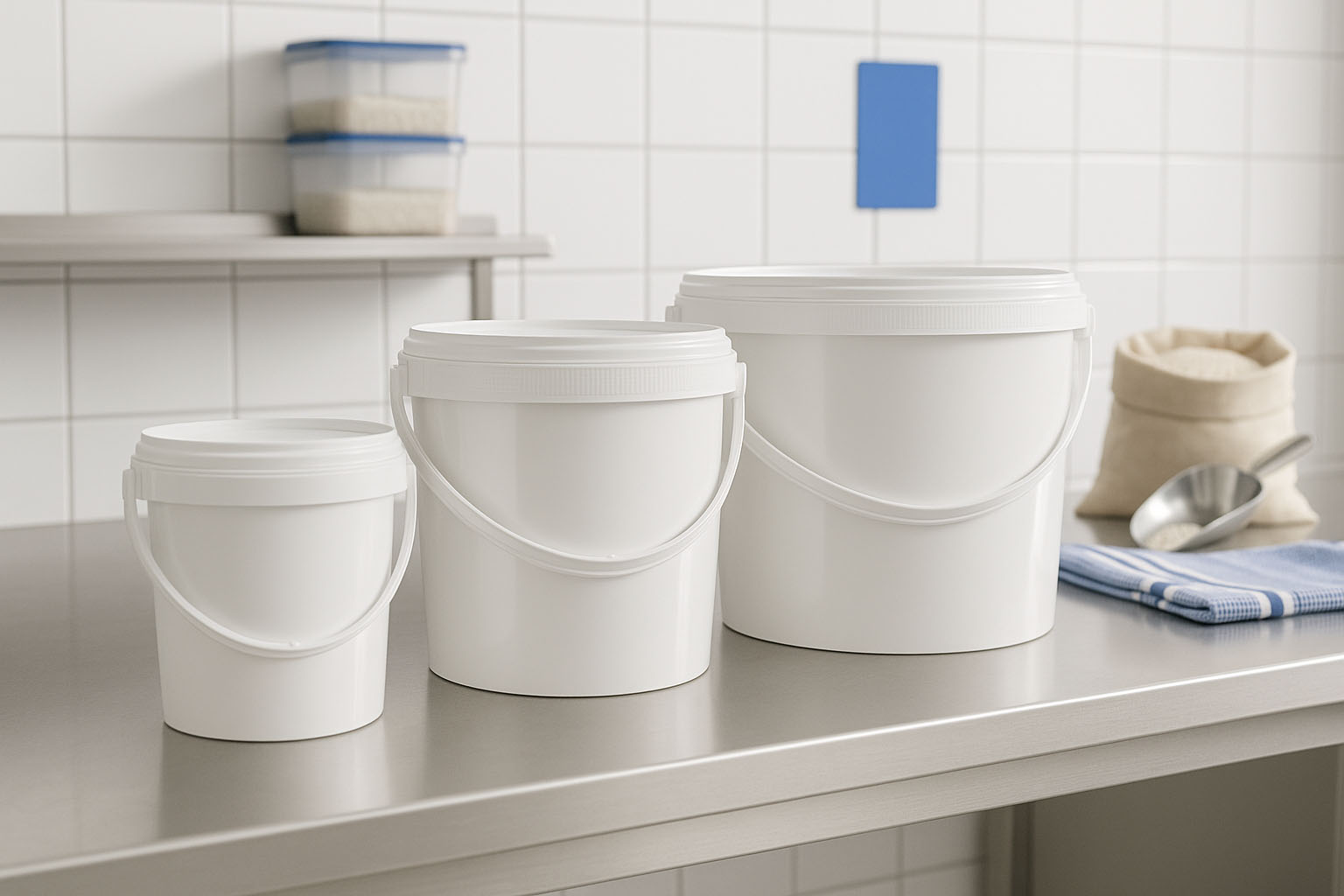 Graças às suas propriedades impermeáveis e aptas para contacto com alimentos, os baldes de plástico são ideais para o armazenamento de alimentos, bem como para utilização na produção alimentar. Além disso, são excelentes para a armazenagem segura de líquidos, pós ou grânulos na indústria, artesanato e agricultura. Estes baldes oferecem uma solução higiénica e fiável para numerosas aplicações.