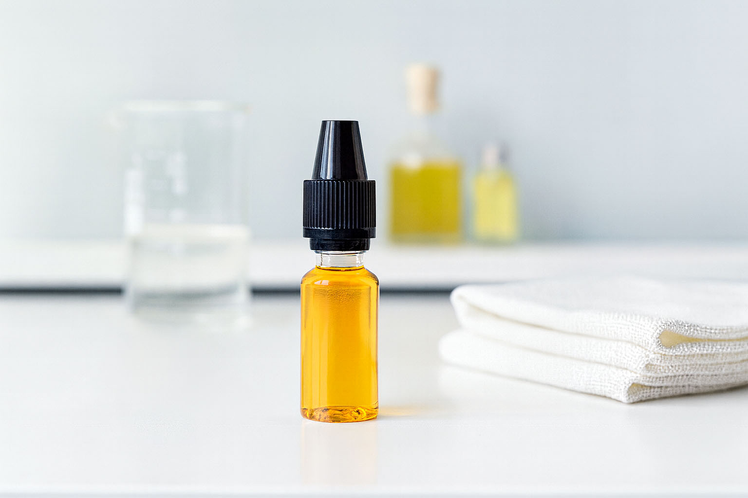 Os frascos PET transparentes de 10 ml "E-Liquid" oferecem uma solução segura e prática para o armazenamento e dosagem de líquidos. São ideais para E-Liquids, medicamentos líquidos e produtos cosméticos, destacando-se pela sua elevada funcionalidade. Em combinação com uma ponta de conta-gotas removível, permitem uma dosagem precisa, enquanto a tampa com fecho de segurança e proteção infantil oferece proteção adicional. No primeiro fecho, a segurança encaixa-se. Ao abrir a tampa pela primeira vez, o anel de segurança desprende-se como sinal visível da primeira abertura. Leve, estável e fácil de usar, o frasco PET "E-Liquid" é a escolha ideal para uma embalagem segura e fiável.