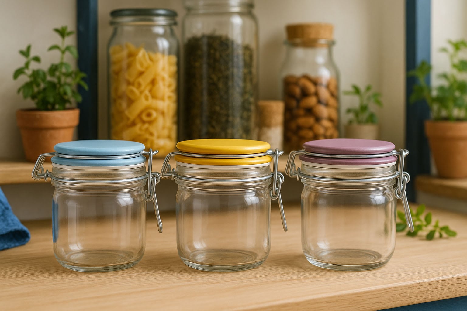 A série „Fido“ combina design clássico com versatilidade funcional. Fabricada pelo renomado produtor italiano Bormioli Rocco, este frasco com fecho de arame destaca-se pelo seu acabamento de alta qualidade e durabilidade. Cada frasco é fornecido com um fecho de arame resistente, uma tampa de vidro e um anel de borracha, garantindo uma vedação hermética. Além disso, as tampas estão disponíveis em várias cores – azul, amarelo, verde, rosa e violeta – conferindo a cada frasco um toque individual.