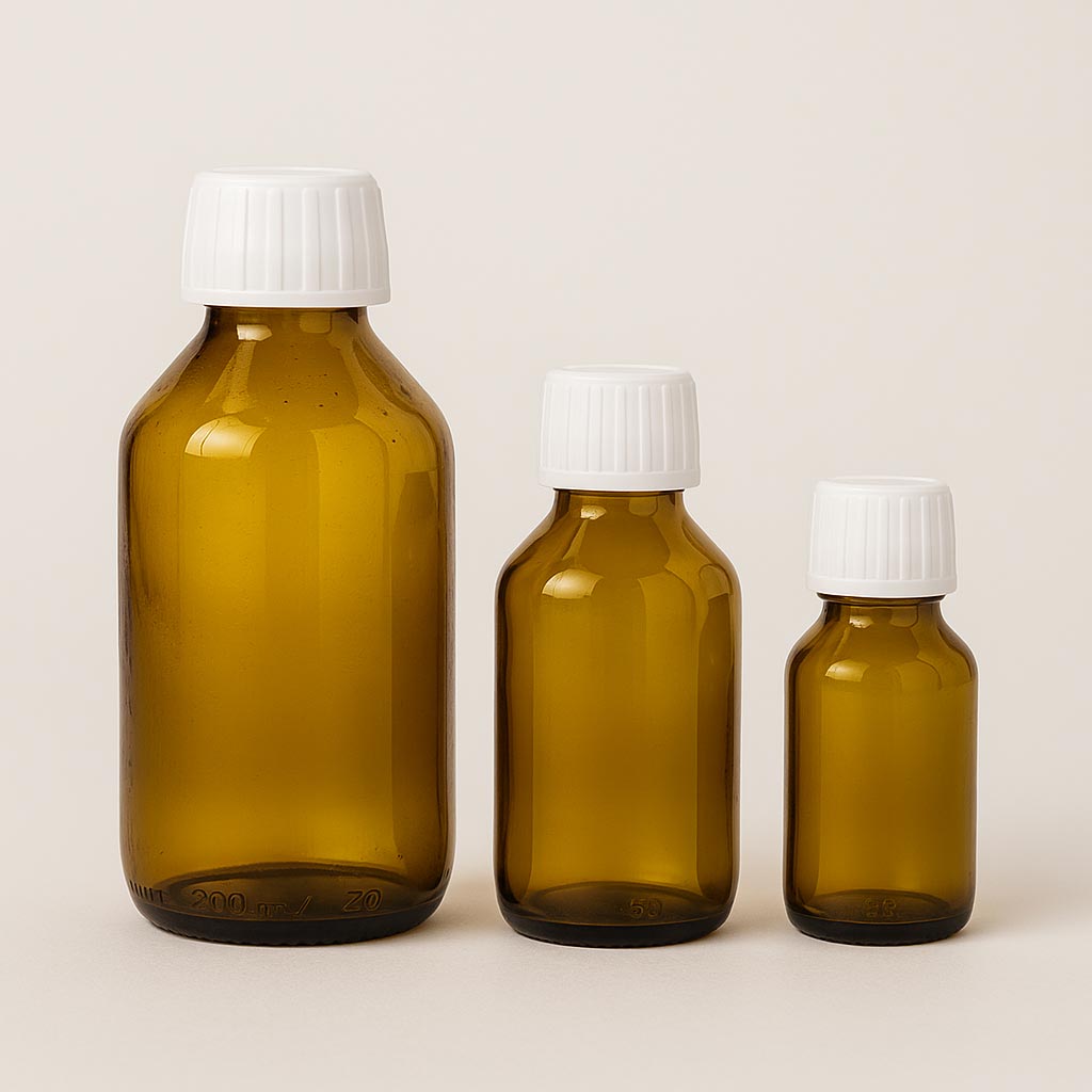 O frasco de medicamento castanho combina segurança funcional com um design intemporal, oferecendo uma solução ideal para produtos farmacêuticos e cosméticos. A sua base redonda proporciona uma aparência clássica e uma boa estabilidade, enquanto o vidro colorido assegura uma excelente proteção contra a luz, protegendo o conteúdo contra influências externas nocivas. Com um volume que varia entre 50 e 1000 ml, este frasco é adequado para diversas aplicações. A boca padronizada PP 28 permite um fecho seguro e é compatível com tampas do nosso sortido. Este frasco de medicamento de alta qualidade representa proteção, qualidade e uma apresentação profissional do produto.