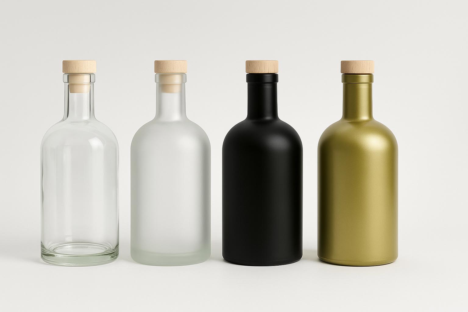 A série Gerardino combina estética clássica com a mais alta qualidade de fabrico, oferecendo uma seleção requintada de garrafas de vidro transparente para bebidas espirituosas exigentes. Com o seu ombro arredondado pronunciado e acabamento refinado, representa uma elegância intemporal e impressiona pela sua produção de alta qualidade na Alemanha. Disponível nas cores de vidro Transparente, Dourado, Preto e Branco (fosco), o Gerardino destaca cada criação com estilo. As garrafas estão disponíveis em volumes de 700 a 1000 ml e possuem uma boca larga para rolhas – tampas adequadas estão disponíveis no nosso sortido. Ideal para licores exclusivos, variedades nobres de grappa e gin de primeira qualidade, o Gerardino é a escolha perfeita para marcas que valorizam qualidade e estética.
