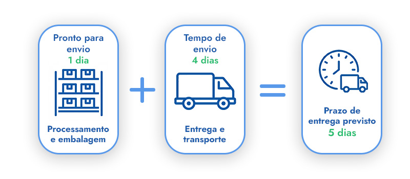 «Tempo de envio» descreve o tempo que o prestador de serviços de envio (por exemplo, DPD, DHL) necessita para recolher a sua encomenda no centro de expedição e transportá-la para o local de entrega desejado.
