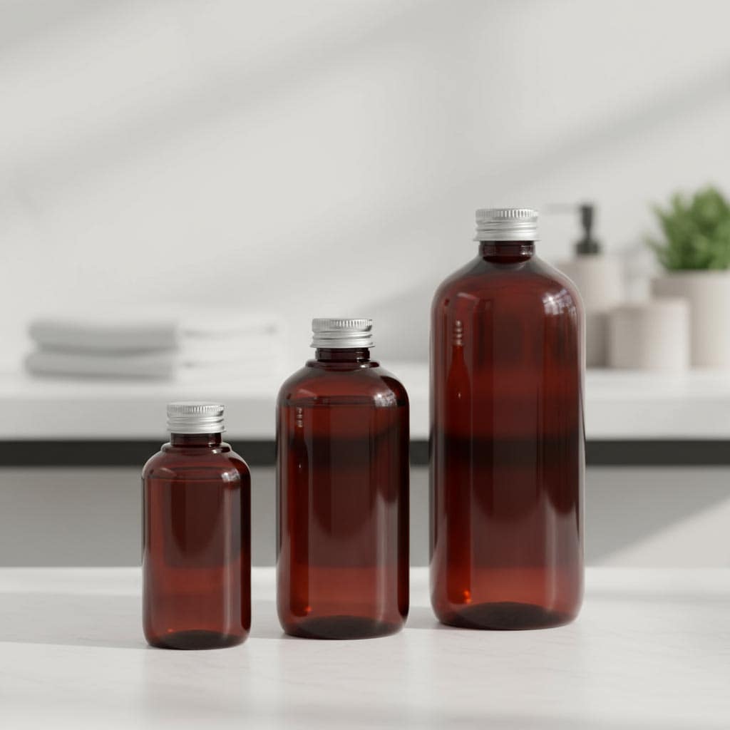 Garrafas e Frascos Frasco de plástico reciclado 100 ml 'Victor's Best', PCR, castanho, bocal: 24/410