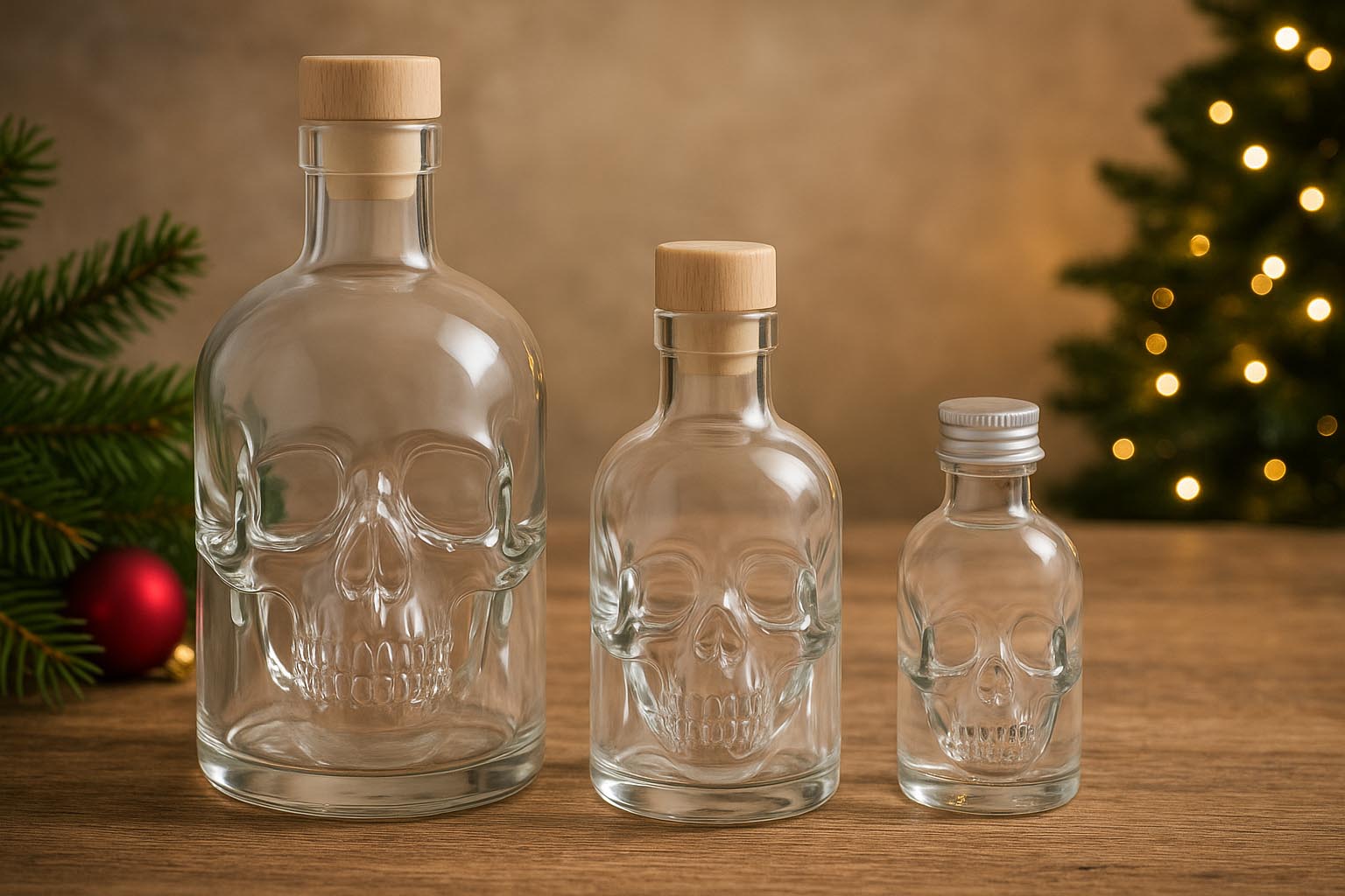 Garrafas e Frascos Frasco de vidro de 200 ml 'Caveira', Boca: Cortiça