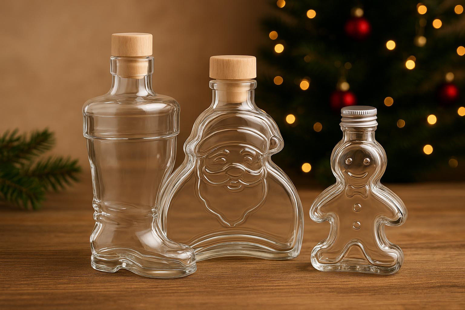 As nossas diversas garrafas de design especial, como "Eva" e "Adam", "Porquinho da Sorte", "Árvore de Natal" e "Homem de Gengibre", personificam uma elegância intemporal e estabelecem padrões em qualidade e design. Cada garrafa destaca-se por um motivo característico, frequentemente elaborado com carinho, e um acabamento de alta qualidade que convence tanto utilizadores profissionais como clientes particulares com sentido estético. Os recipientes estão disponíveis em vários tamanhos, desde 40 ml até 500 ml, e oferecem, com tampa de cortiça, PP ou fecho de alavanca, uma solução elegante para o armazenamento seguro e hermético de bebidas espirituosas, licores e outras bebidas.