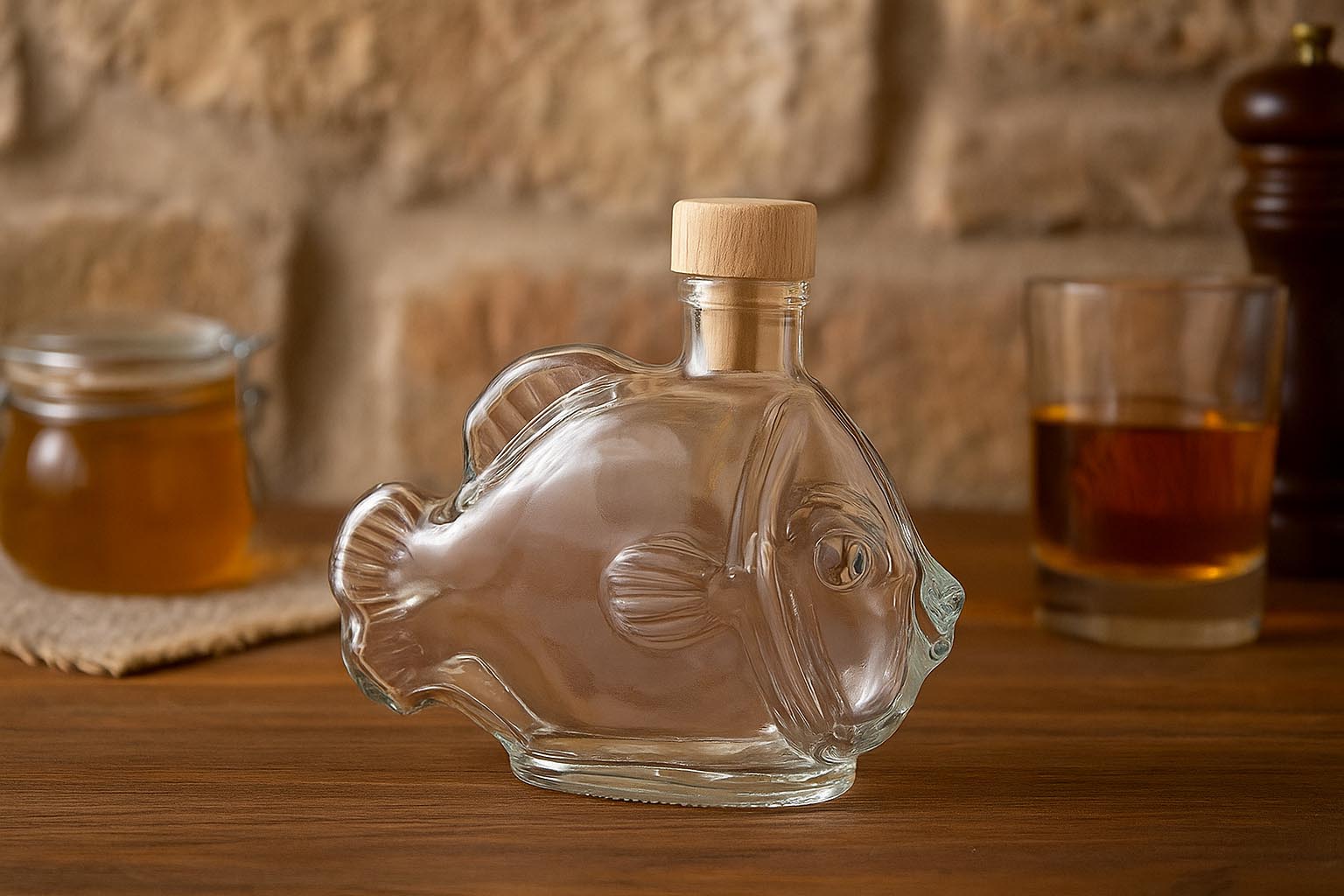Garrafas e Frascos Frasco de vidro de 200 ml 'Peixe', boca: cortiça