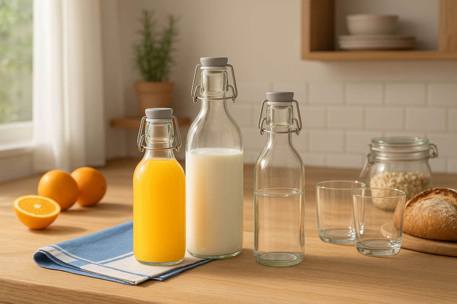 Graças ao seu design universal, a série „Emilia“ é perfeita para sumo, leite, vinho e muitos outros produtos líquidos. Seja para uso diário na cozinha, na restauração ou como embalagem sustentável para produtos de alta qualidade – combina uma apresentação elegante com uma utilização prática.