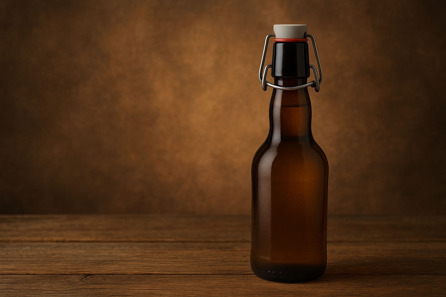Garrafas de cerveja com gargalo de papo e fecho de mola