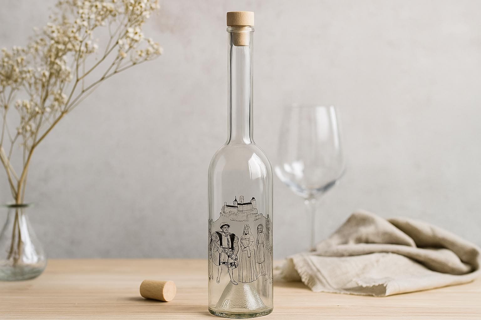 Garrafas e frascos Garrafa de vidro de 500 ml 'Opera', motivo: Caçador, bocal: cortiça