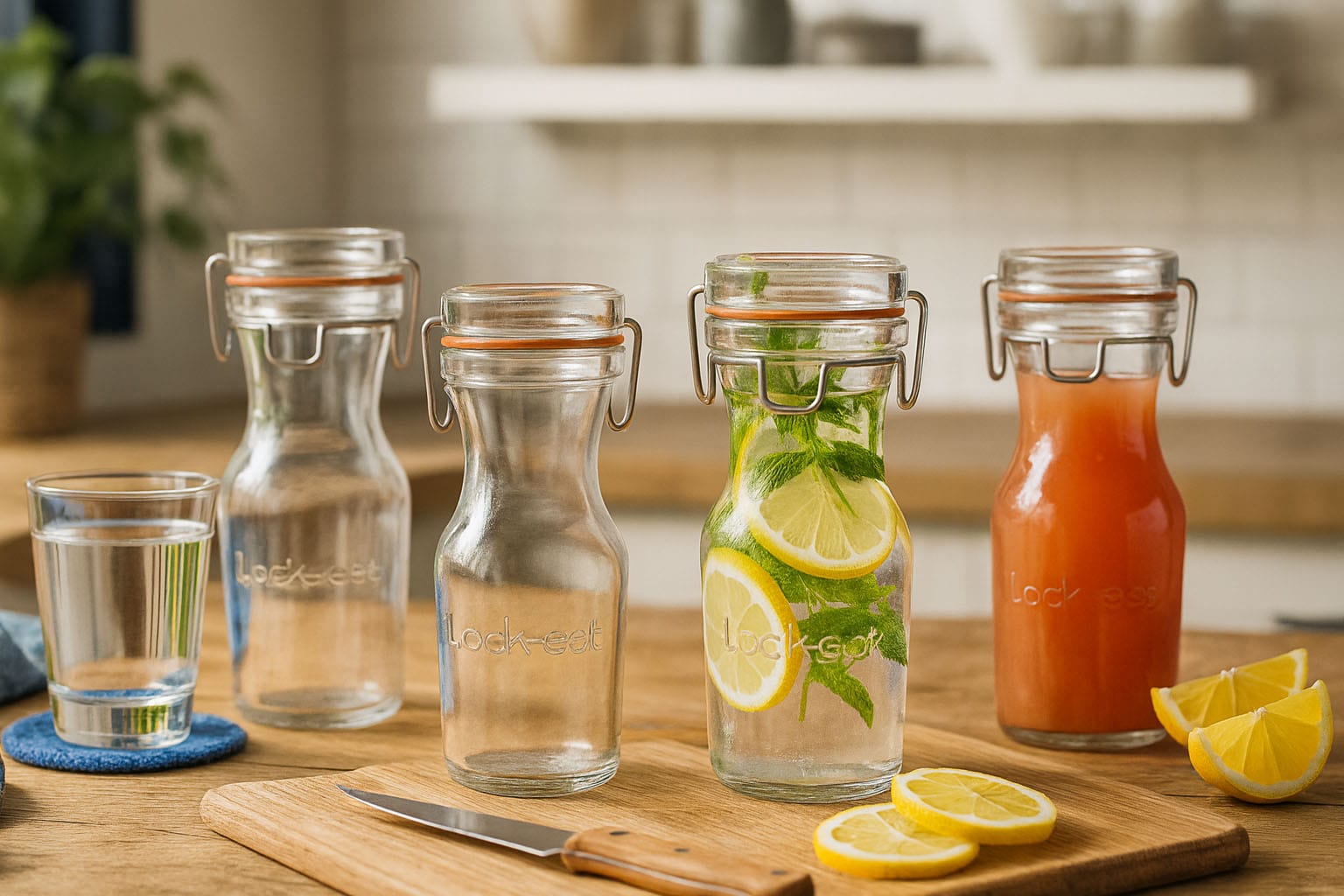 Lock-Eat – garrafa de vidro inovadora para armazenamento e serviço com estilo