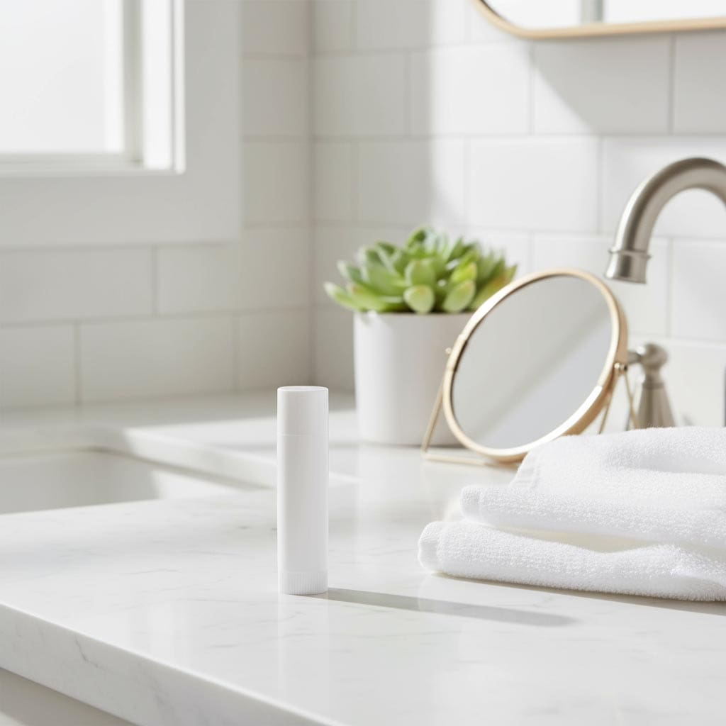 A tampa branca e redonda do batom é feita de polipropileno (PP) de alta qualidade, um plástico resistente e duradouro. Proporciona um ajuste preciso que garante uma vedação segura e protege o conteúdo de forma fiável contra influências externas. O design moderno e funcional permite uma utilização fácil.
